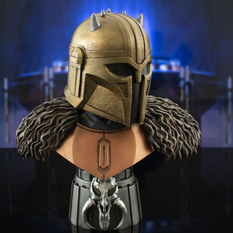 A Gentle Giant LTD release! She’s a legend among the Mandalorians, and now she’s a Legend in 3-D! The Armorer, spiritual leader of Din Djarin’s sect, is the latest Star Wars character to be made into a 1/2-scale Legends in 3-Dimensions bust. She sits head and shoulders atop a forge-inspired base, with a mythosaur skull on the front, and features detailed sculpting and paint applications. Limited to only 1,000 pieces, it comes packaged in a full-color box with a numbered certificate of authenticity. SRP: $200.00