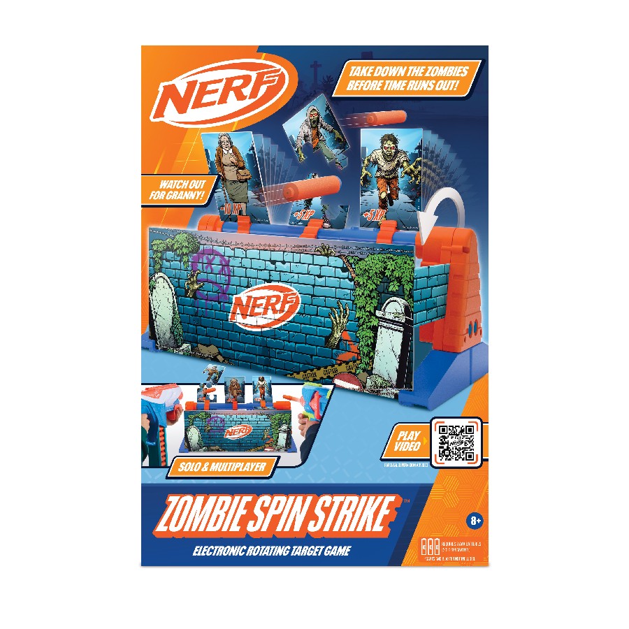 3. ZOMBIE SPIN STRIKE – Try and stop the endless swarm of zombies before they get to you! Each successful zombie hit splits the target on impact. But be careful, watch out and try not to hit granny! With 3 speed modes, this electronic target is sure not to disappoint. (Launching July at Target, Amazon, Macy’s & other retailers)