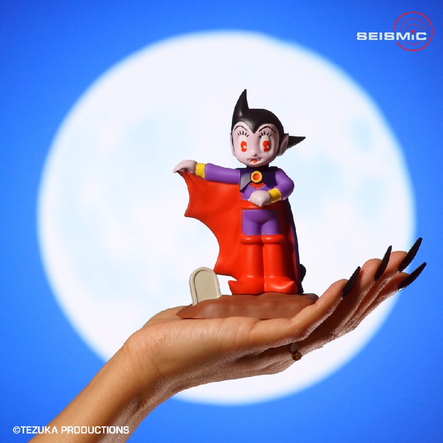 “Astro Boy is such an important piece of Japanese pop culture,” explains Seismic CCO Alex Rushdy. “We’ve built something totally unprecedented, mixing famous western monsters like werewolves and vampires with the classic Japanese brand. It’s really exciting for us as fans of classic horror and Astro Boy since we were kids. It’s also exciting for us to offer a blind box product at a lower price point than our usual figures.”