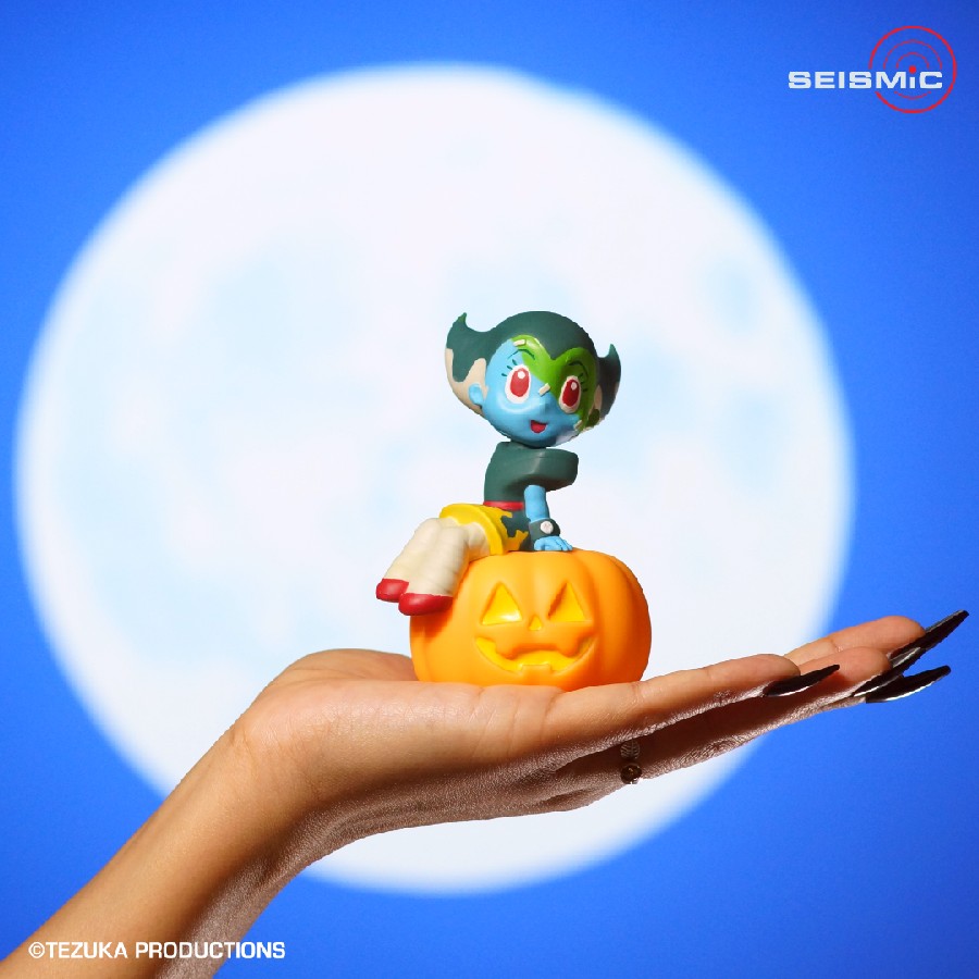 Seismic Toys in collaboration with Gums Productions, has announced a brand new partnership with the legendary Tezuka Productions to produce officially licensed Astro Boy figurines, available for pre-order right now. The figures mix Tezuka’s iconic Astro Boy with halloween-themed monsters for a unique blend of sci-fi, horror, and cuteness.