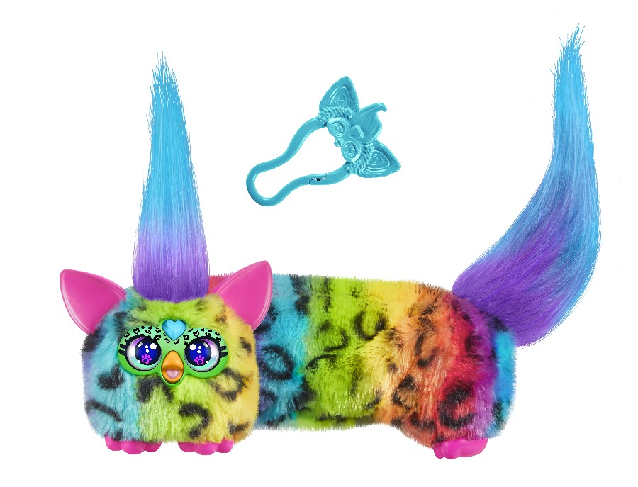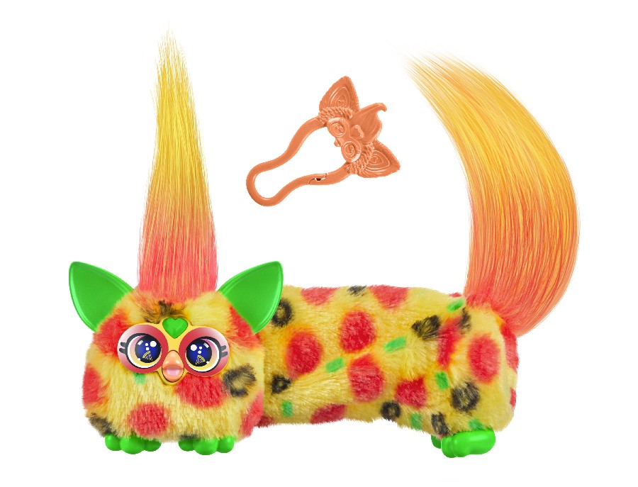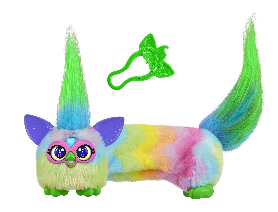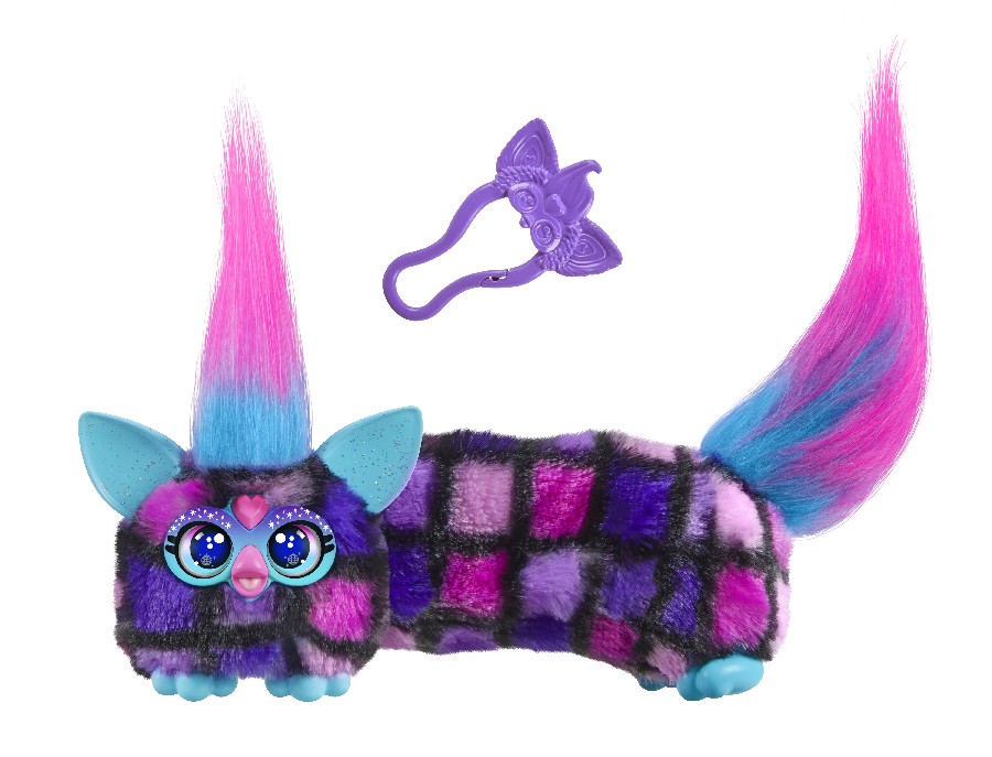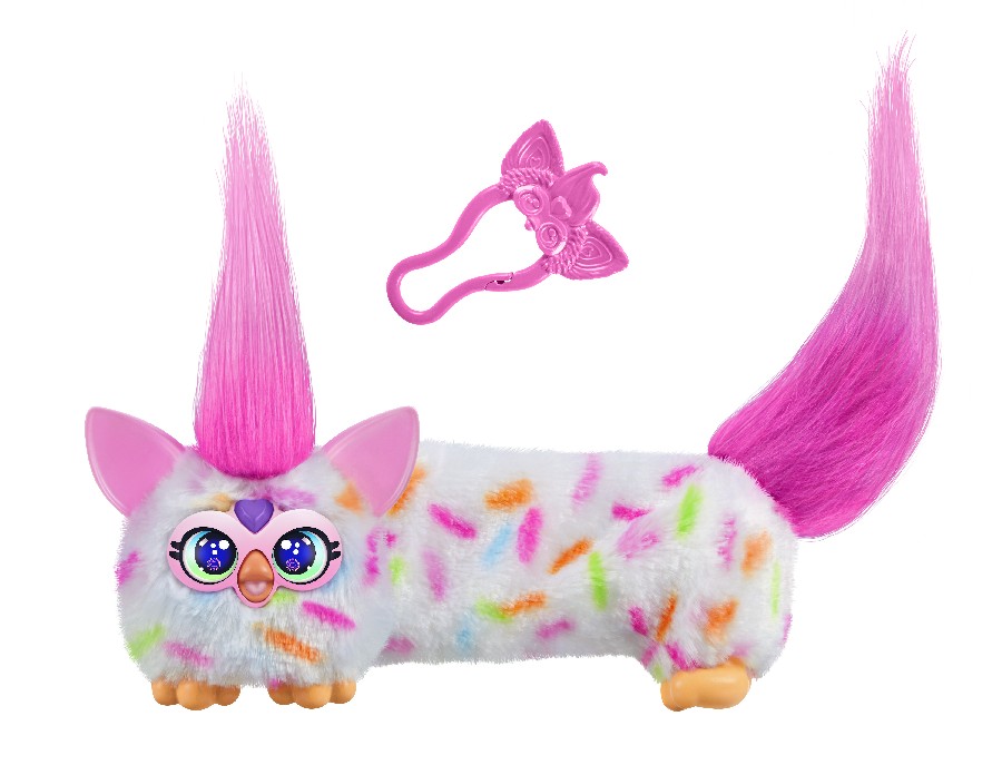 The DJ FURBY collection also makes its way into the DJ FURBY Furblets line, offering travel-ready friends with stretchy bodies, silly sounds and bold personalities! Priced at $12.99 each. These mini DJ Furbys bring the party with a stretchy plushie body, fun music, sounds, and the unique Furbish language. Stretch the body to start a song or make a song hilariously speed up while it’s playing for silly sensory play. There’s a button to retract the mini Furby toy to its original size, (like a tape measure.) Pressing the heart gem also plays music, and the mouth makes silly feeding noises and sound effects. DJ Furblets also make great travel toys for kids to clip to a bag and bring along on their next adventure. Wave 1 includes:
