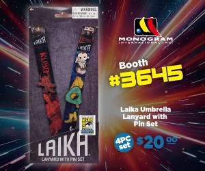 Whether you’re badge-wearing at the con or just showing off your love for Laika, this set is a must-have. Packaged on a peggable backer card with the pins displayed on the lanyard strap. Only 250 available — get yours for $20 at Booth #3645 before they vanish into the Other World!