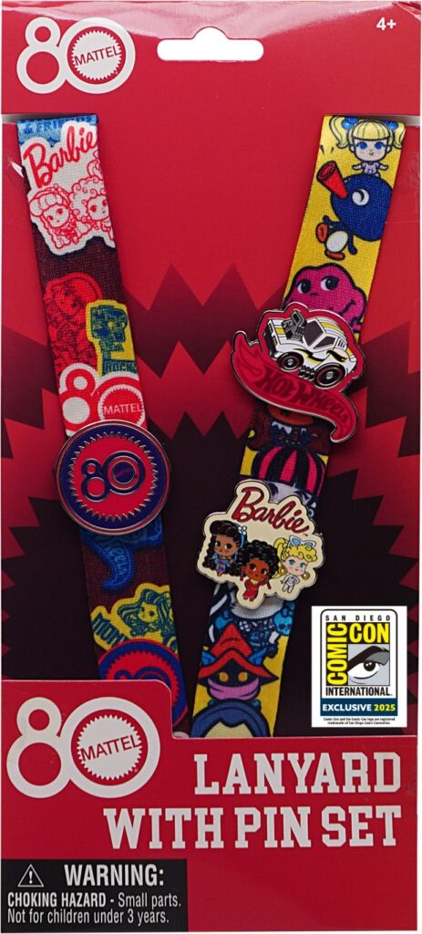 Packaged on a peggable backer card with the pins attached directly to the lanyard strap. Only 250 available — snag yours for $20 at Booth #3645 and join the celebration of Mattel’s toy legacy!
