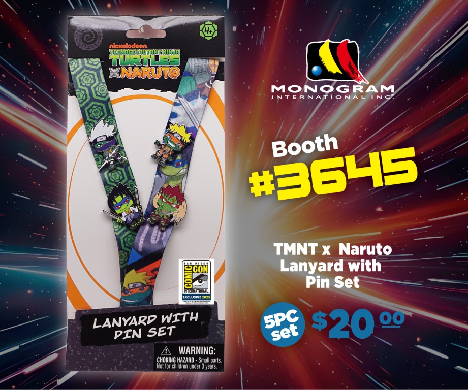 Monogram has shared their 17th exclusive for this year’s SDCC – a Teenage Mutant Ninja Turtles X Naruto lanyard and pins set – with 1 lanyard and 4 pins. This will be available exclusively at Monogram’s SDCC booth #3645 – keep reading for more details.