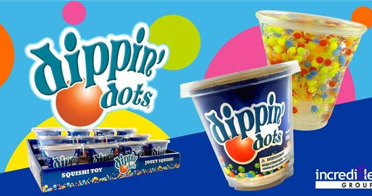 Incredible Group is adding to their Squishi Toy line with the introduction of everyone’s favorite beaded ice cream brand – Dippin’ Dots. Dippin’ Dots is now joining other iconic snacks such as ICEE, Bazooa, Ring Pop, Sour Patch Kids and Swedish Fish in the Squishi Toy line. Each Dippin’ Dots Squishi Toy (and really all the Squishi Toys) is scented and designed to emulate the original look and packaging of the sweet treats that inspired it.