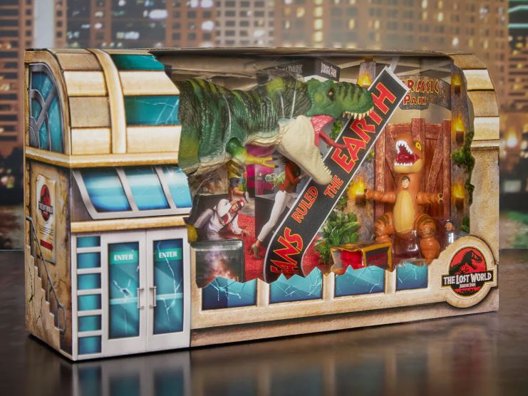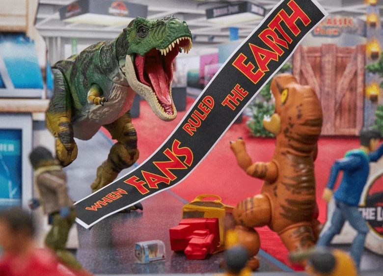 Breaking News: “Buck” is on the loose! This Tyrannosaurus Rex Convention Crasher set celebrates an iconic moment from The Lost World: Jurassic Park with a fun SDCC twist. We’ve caught this ravenous dinosaur roaring into action, poised to attack an “inflatable” superfan.