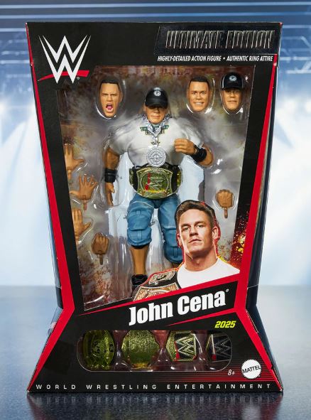 You can’t see me!” John Cena says, but we can absolutely see our WWE® Ultimate Edition John Cena® figure in your collection. The advanced articulation and swappable heads and hands let you capture memorable Superstar moments. Create a winning display with his five Championship Title accessories, honoring 16 World Championship reigns.