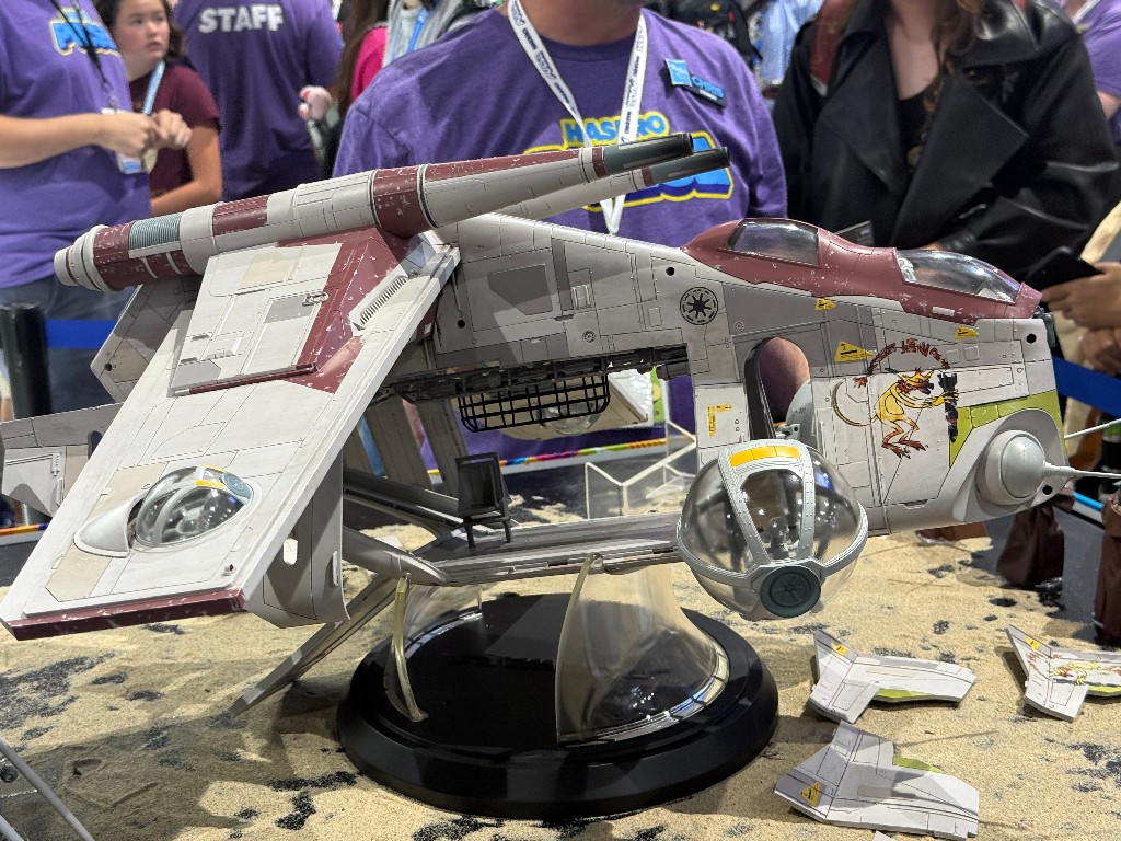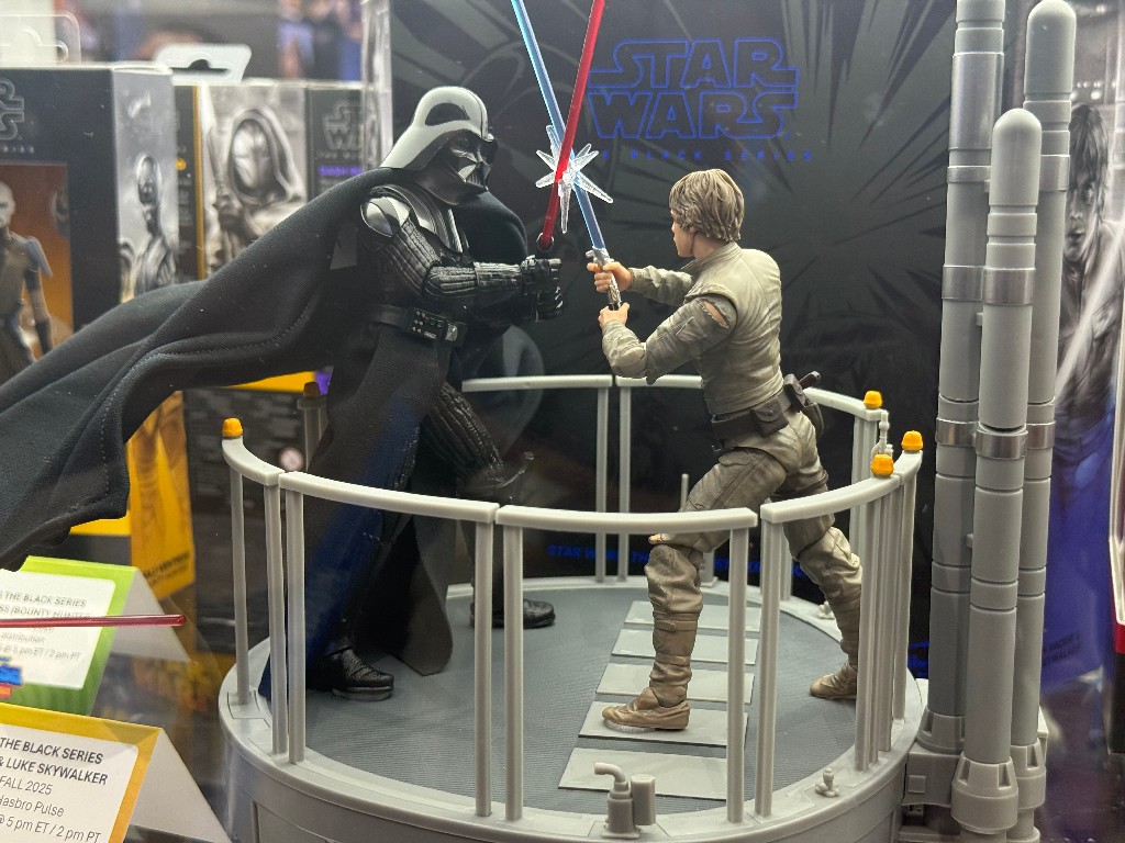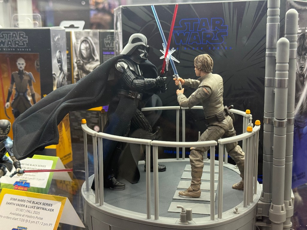 Direct from Hasbro’s SDCC booth (well and the press breakfast) the below gallery has photos of some newly announced figures from a Galaxy far, far away. Included are three new Halloween inspired photos, the Luke / Vader Black Series display set, the new Jango Fett, Bantha, HasLab Gunship and more.